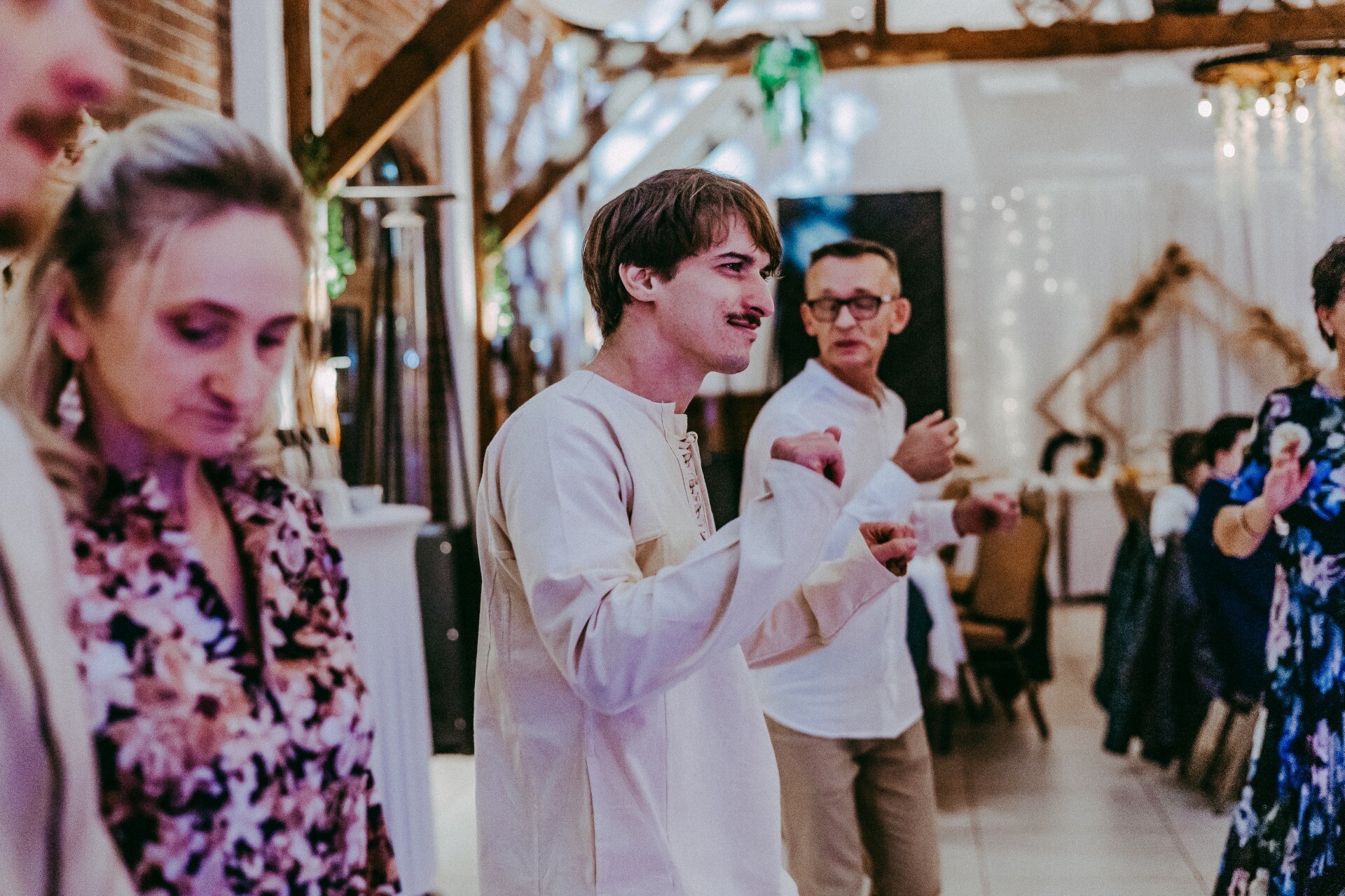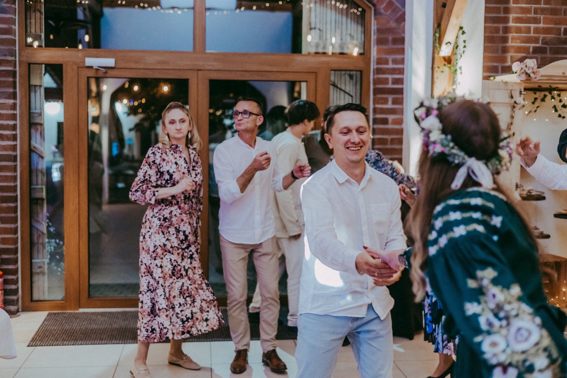 Beata i Maciej, w swoich słowiańskich strojach, tańczyli w centrum uwagi – ale bez zadęcia. Naturalnie, z lekkością, z radością. Jakby ta noc należała tylko do nich i ich ukochanych gości. Prowadzone przez nich korowody, wspólne śpiewy, rytmiczne klaskanie – wszystko mieszało się w żywy obraz wspólnoty, który trudno opisać, a jeszcze trudniej zapomnieć.